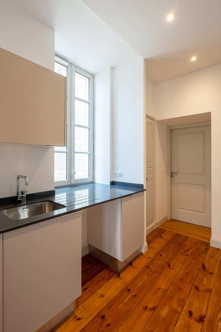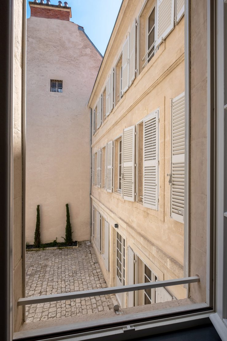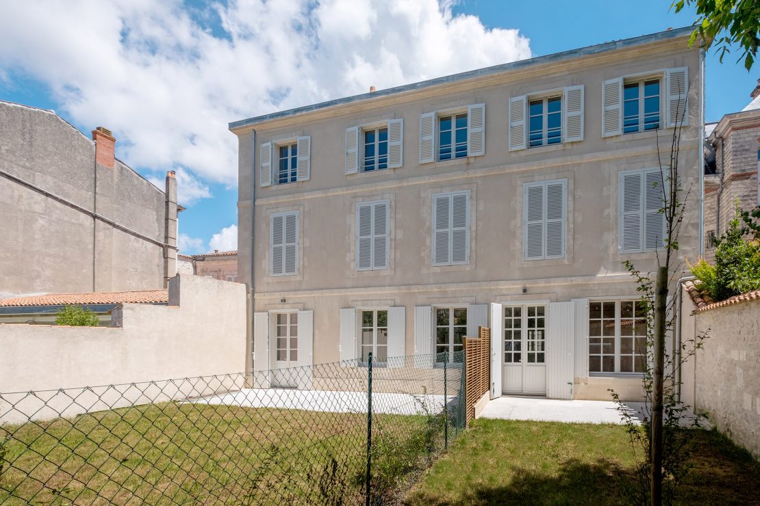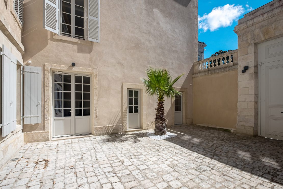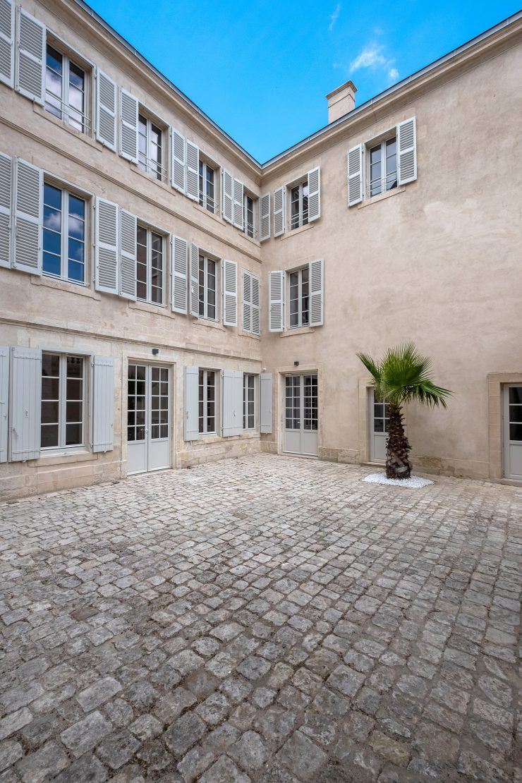 Cet ancien hôtel particulier, composé d’un bâtiment principal et d’une aile latérale, ouvre sur une vaste cour pavée et un grand jardin. La quiétude et l’harmonie des lieux feraient presque oublier aux nouveaux résidents qu’ils se trouvent au cœur de La Rochelle.