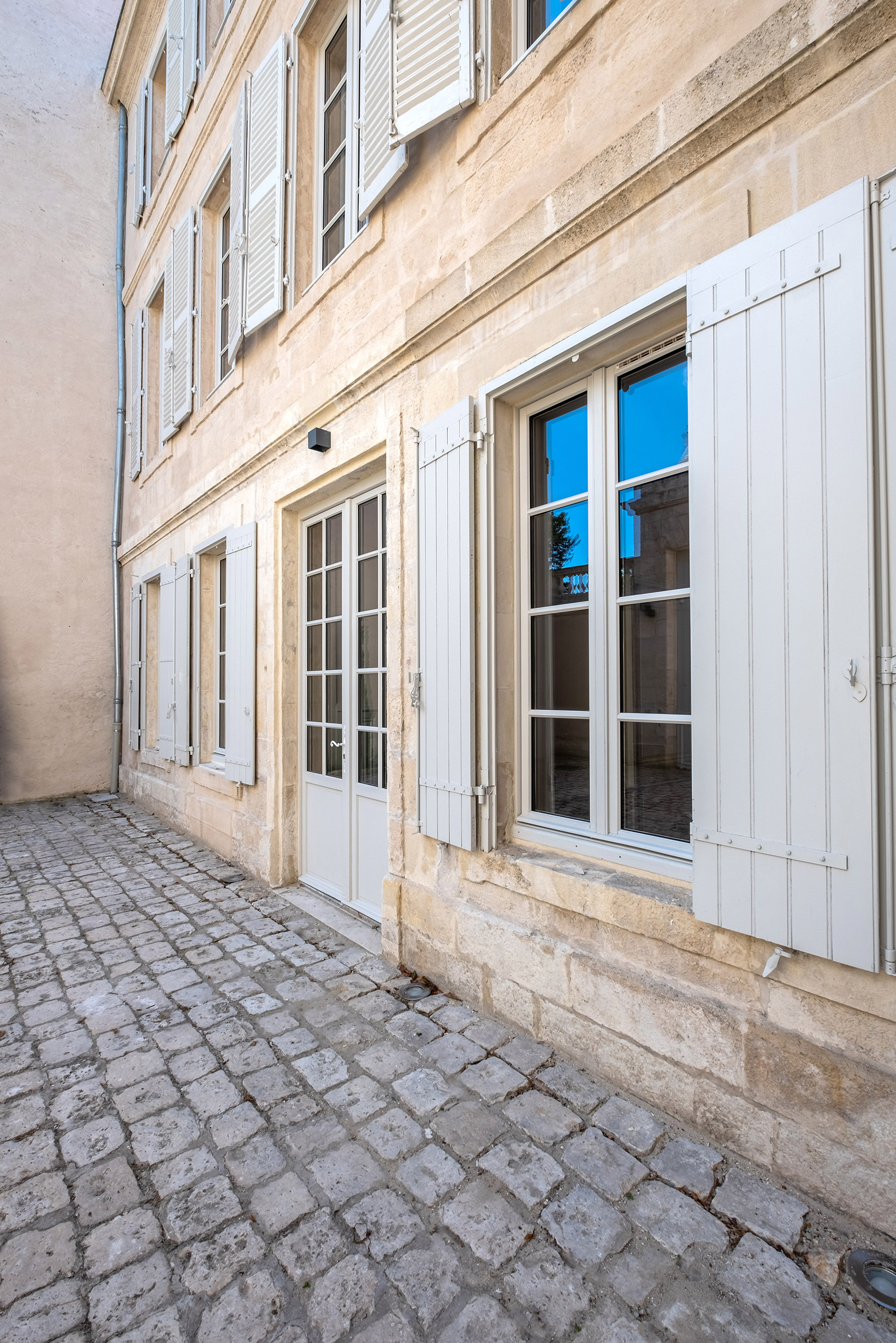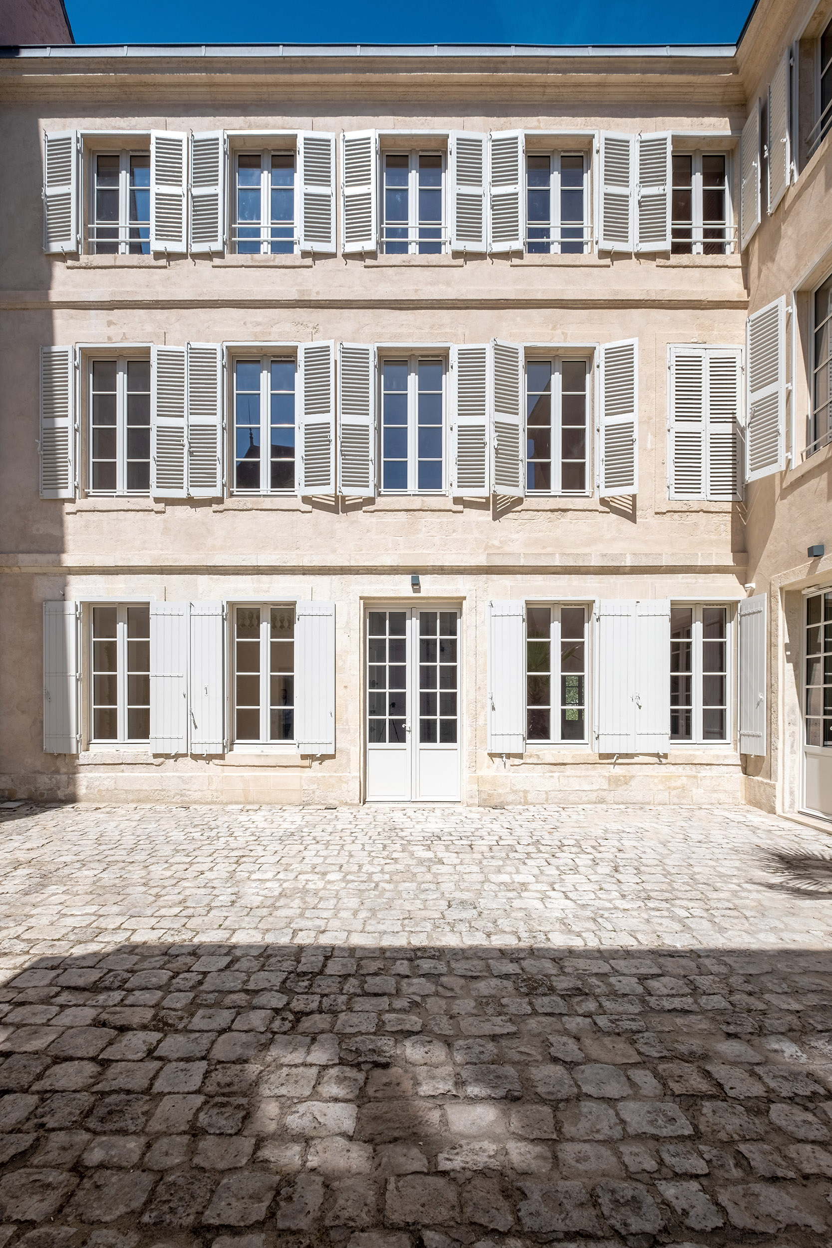 Cet ancien hôtel particulier, composé d’un bâtiment principal et d’une aile latérale, ouvre sur une vaste cour pavée et un grand jardin. La quiétude et l’harmonie des lieux feraient presque oublier aux nouveaux résidents qu’ils se trouvent au cœur de La Rochelle.